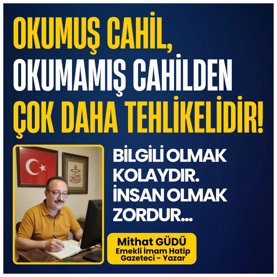 Okumuş cahil, okumamış cahilden çok daha tehlikelidir; çünkü ilkokul mezunu cahil, en fazla kendi hayatını zehir eder. Üniversite bitirmiş, unvan sahibi cahil ise hem kendi hayatını hem de etrafındakilerin hayatını zehir eder. Üstelik bunu “ben haklıyım” diye yapar, “ben daha bilgiliyim” diye yapar, “ben daha üstünüm” diye yapar.