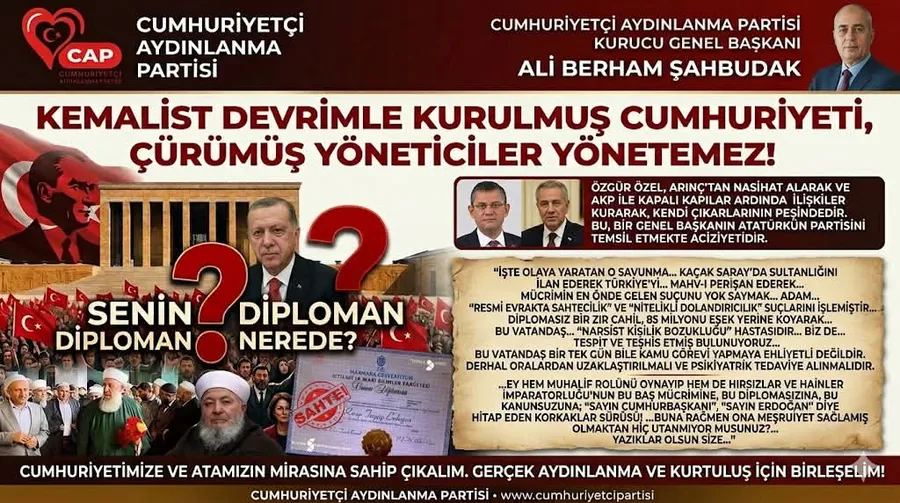 Cumhuriyetin ve Türk milletinin yegâne kurtuluşu, "DİPLOMA NEREDE?" sorusunu yüksek sesle, Erdoğan’a ve AKP’ye her platformda sorarak mümkündür. Ancak bu sorunun, halkın vicdanını temsil etmesi gereken Ana Muhalefet Partisi’nin (CHP) Genel Başkanı Özgür Özel tarafından yüksek sesle sorulmasını beklemek, beyhude bir beklentidir.