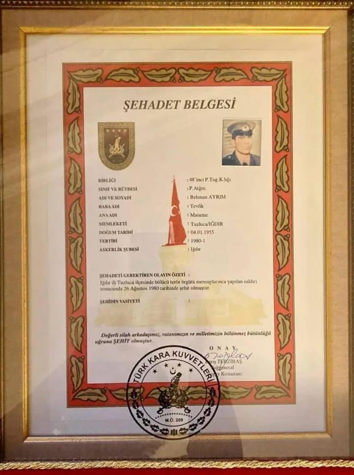 Behman Ayrım artık sadece hatıralarda değil, resmi tarihte de bir şehittir. Adı artık saygıyla anılıyor, sessizlikle değil.