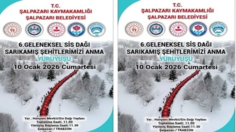 Sarıkamış Şehitlerimizin Aziz Hatırasını yaşatmak amacıyla düzenlenen 6.Geleneksel Sis Dağı Sarıkamış Şehitlerimizi Anma Yürüyüşü,10 Ocak 2026 Cumartesi günü gerçekleştirilecektir.