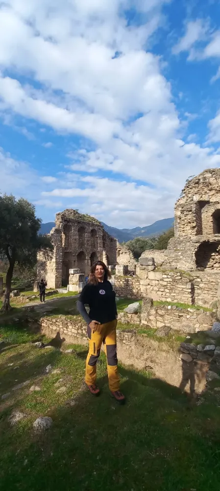 Yürüdükçe antik kentin kalıntıları belirmeye başladı. Bazı zeytin ağaçlarının altında kalan tonozlar, tarihin doğanın içine nasıl karıştığını gösteriyordu. Nysa, doğayı yok ederek değil; onunla uyum içinde var olmayı başarmış bir kentti. Tarihe doğru sessiz bir yolculuk başlamıştı.