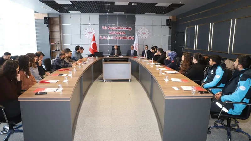 Adıyaman İl Sağlık Müdürlüğü ev sahipliğinde, Acil Sağlık Hizmetleri Genel Müdürlüğü SAKOM Birim Sorumlusu Uzm. Dr. Ari Avni Erbil ve beraberindeki heyet, Adıyaman'da yürütülen Sağlık Afet Koordinasyon Merkezi (SAKOM) çalışmalarını değerlendirmek amacıyla il değerlendirme toplantısı gerçekleştirdi.