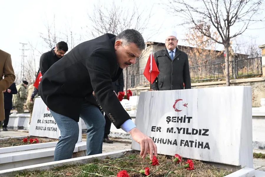 Erzurum Valisi Mustafa Çiftçi ve beraberindeki protokol üyeleri, şehitlikte bulunan mezarları tek tek ziyaret ederek 66 kahramanın kabirlerine karanfil bıraktı. Şehit yakınlarıyla yakından ilgilenen Vali Çiftçi, vatan uğrunda canlarını feda eden 66 kahramanımıza Allah’tan rahmet, kıymetli ailelerine sabır ve başsağlığı diledi.