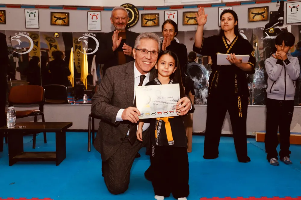 Nazilli’de yaklaşık 20 yıldır hizmet veren Bagatur(Türk Mücadele Sanatı) Dünya Federasyonu’nunda dört aylık Alp’lik eğitimini tamamlayan 127 kursiyer için sertifika töreni gerçekleştirildi. Nazilli’ye bağlı Yeşil Mahalle Bulvarında bulunan Bagatur eğitim alanı Korgan’da 4-40 yaşları arasında Kursiyerler sertifikalarını Nazilli Belediye Başkanı Ertuğrul Tetik, Başkan Yardımcısı Selahattin Yılmaz’ın elinden aldı.