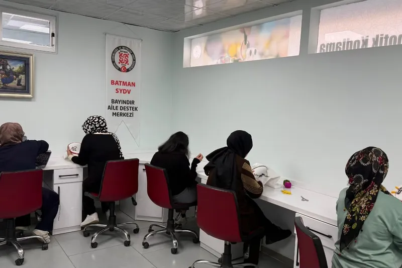 Batman’da faaliyet gösteren Bayındır Aile Destek Merkezi’nde (ADEM), kadınların sosyal ve ekonomik yaşama katılımlarını desteklemeye yönelik el sanatları kursu yürütülüyor.