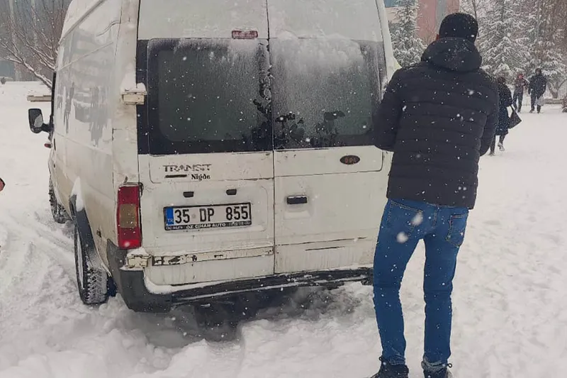 Üniversite yerleşkesi yakınlarında patinaj çeken bir araç, ilerleyemeyince sürücü zor anlar yaşadı. O sırada bölgede bulunan üniversite öğrencileri duruma kayıtsız kalmayarak araca yardım etti. Öğrencilerin itmesiyle araç bulunduğu yerden çıkarılarak yoluna devam edebildi. (İLKHA)