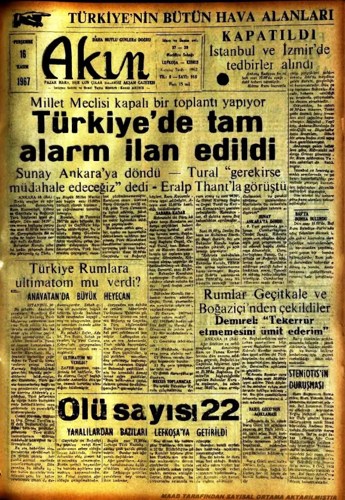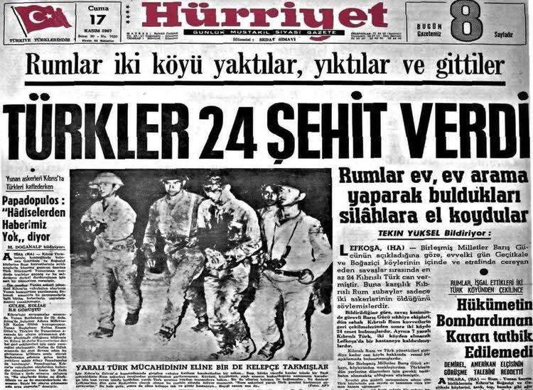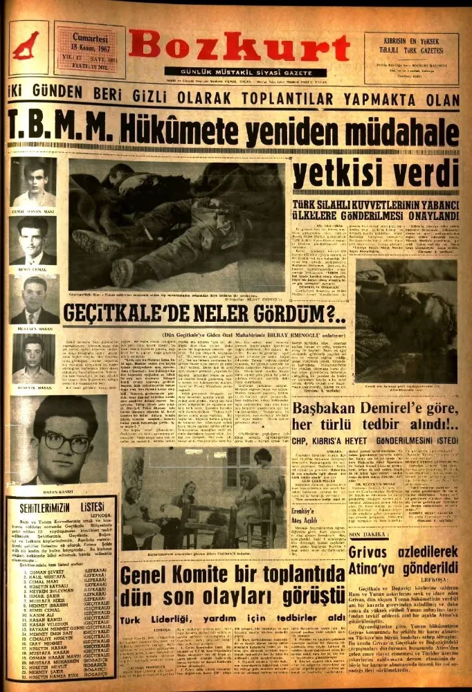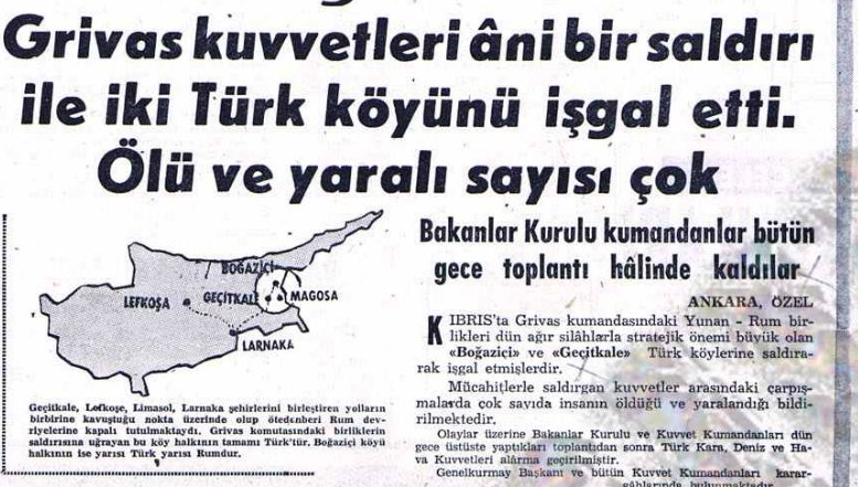 Eli kanlı katil General Grivas komutasındaki 5000 Rum-Yunan askeri, 400 kadar köylü mücahidin savunduğu Geçitkale (Köfünye) ve Boğaziçi (Aytotoro) Köylerine saldırdı. Grivas, 1955-1959 döneminde EOKA terör örgütünü kuran ve yüzlerce Türkü katleden, 1920'de Anadolu'daki Yunan işgaline katılan, Yunan iç savaşında faşist " X " örgütünü kurup Yunan komünistlerini de katleden, Yunan ordusunda general rütbesine kadar yükselen, 1964 Erenköy saldırısını yapan azılı Türk düşmanı, eli kanlı faşist bir katildi