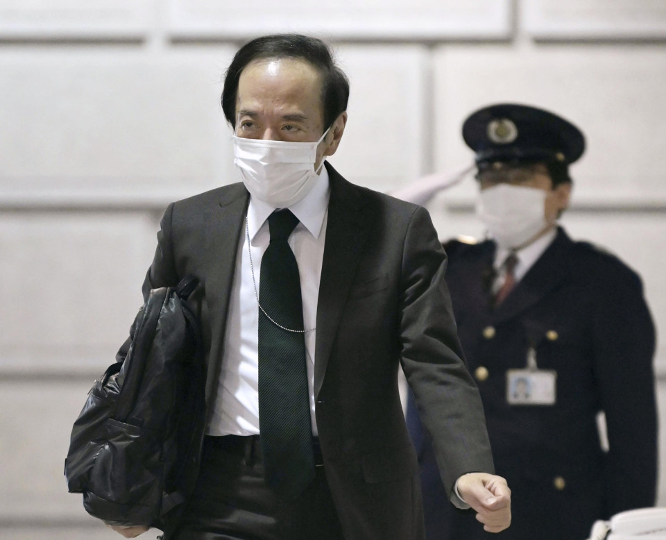 Japonya Merkez Bankası Başkanı Kazuo Ueda, 19 Mart 2024'te merkez bankasının Tokyo'daki merkez ofisine geldi. (Havuz fotoğrafı)(Kyodo)