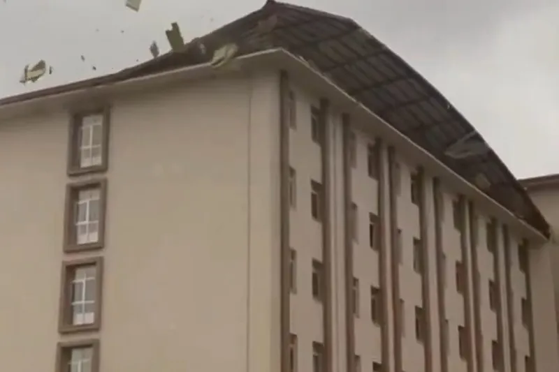 Uludağ Üniversitesi kampüsü içinde yer alan yurdun çatısı ise büyük bir gürültü ile uçtu. Uçan çatı bazı odalarda hasara yol açtı.