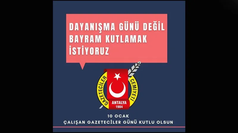 Antalya Gazeteciler Cemiyeti (AGC), 10 Ocak Çalışan Gazeteciler Günü dolayısıyla yazılı bir basın açıklaması yayımladı. Açıklamada, 212 Sayılı Basın İş Kanunu’nun 10 Ocak 1961’de yürürlüğe girmesiyle birlikte bu tarihin Basın Bayramı olarak kutlanmasının amaçlandığı hatırlatılarak, gelinen noktada bayram yerine “dayanışma günü” olarak anılmasının büyük bir üzüntü kaynağı olduğu vurgulandı.