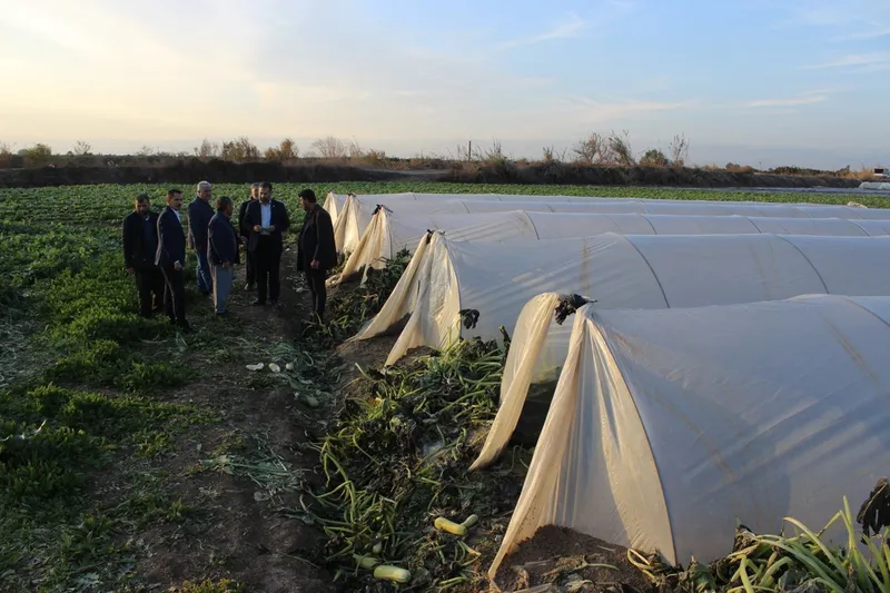 Tanış, ilk olarak Egemen Mahallesi Muhtarı Aydan Koyuncu’yu ziyaret ederek bölgedeki çiftçilerin durumu hakkında bilgi aldı. Ardından Muhtar Koyuncu ile birlikte çiftçilerin yaşadığı mağduriyeti yerinde görmek amacıyla tarlalara geçti.
