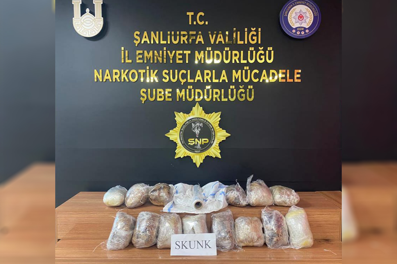 '27 Ağustos 2023 tarihinde Narkotik Suçlarla Mücadele Şube Müdürlüğü görevlilerimizce Uyuşturucu Madde Kullanımı ve Satışıyla mücadele kapsamında yapılan operasyonda; durdurulan bir araçta yapılan aramalarda 14 parça halinde toplam 8 kilo 800 gram skunk maddesi ele geçirilmiş şüpheli iki şahıs gözaltına alınarak haklarında 'Uyuşturucu Madde Ticareti Yapmak ve Nakletmek' suçundan adli tahkikata başlanılmıştır.'