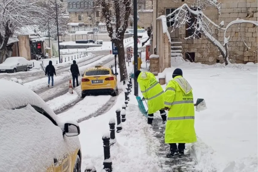 Gaziantep Büyükşehir Belediyesi, kent genelinde etkili olan kar yağışı nedeniyle kaldırım ve yaya yollarında karla mücadele çalışmalarını aralıksız sürdürüyor.