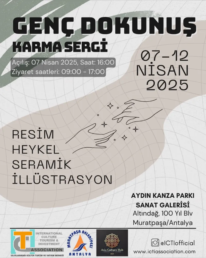 Uluslararası ICTI Derneği’nin öncülüğünde, Özge Araslı’nın organizasyonu ve Onur Sağır ile Işınsu Deniz Türk’ün küratörlüğünde düzenlenen “Genç Dokunuş” karma sergisi, 7 Nisan 2025 tarihinde Aydın Kanza Parkı Sanat Galerisi’nde sanatseverlerle buluşuyor.