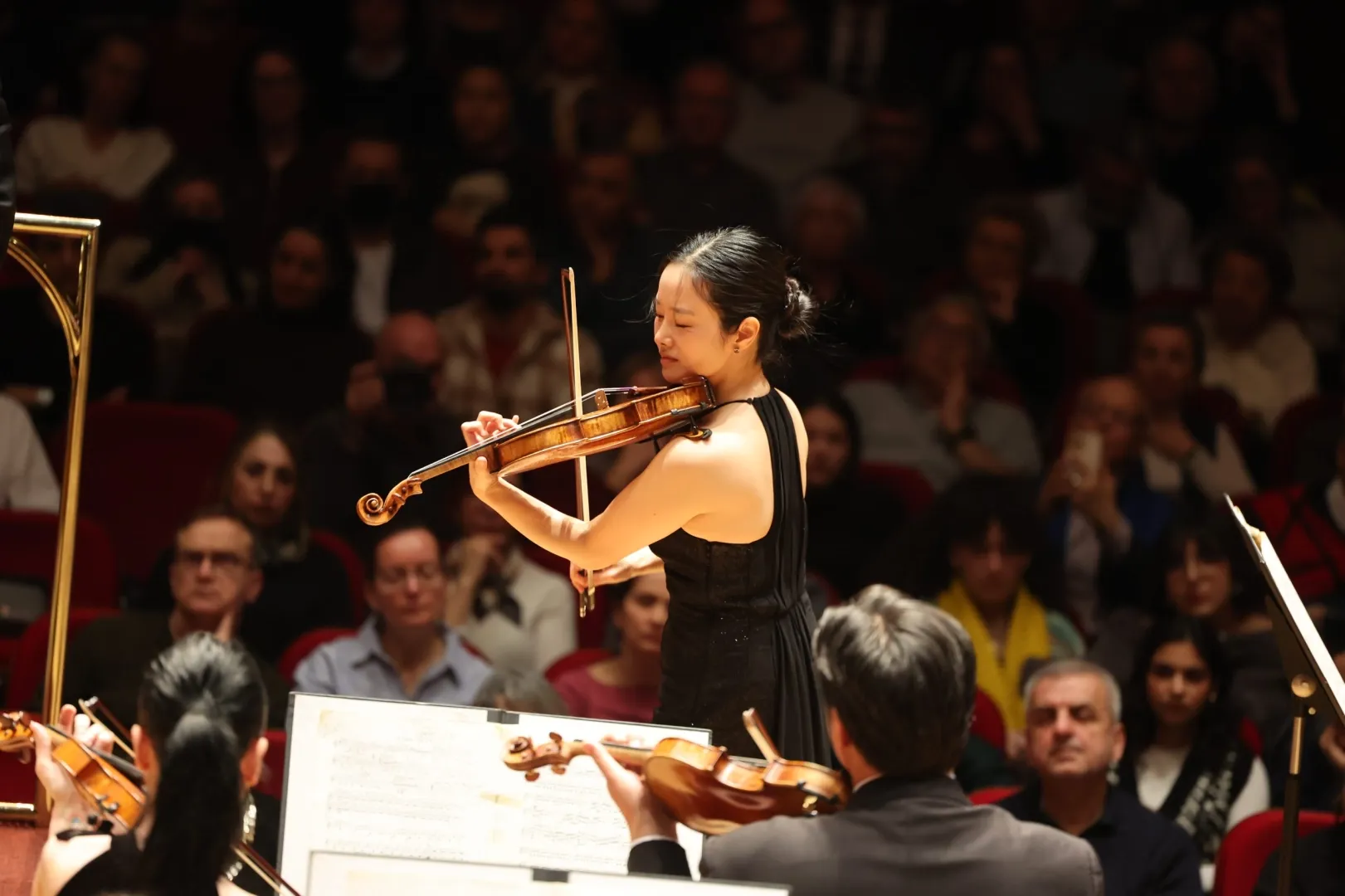 İzmir Büyükşehir Belediyesi Ahmed Adnan Saygun Sanat Merkezi'nde (AASSM) iki büyük isim aynı sahnede İzmirlilerle buluştu. İzmir Devlet Senfoni Orkestrası’nı (İZDSO) yöneten şef Christoph-Mathias Mueller ve keman virtüözü Bomsori Kim izleyenlerden tam not aldı.