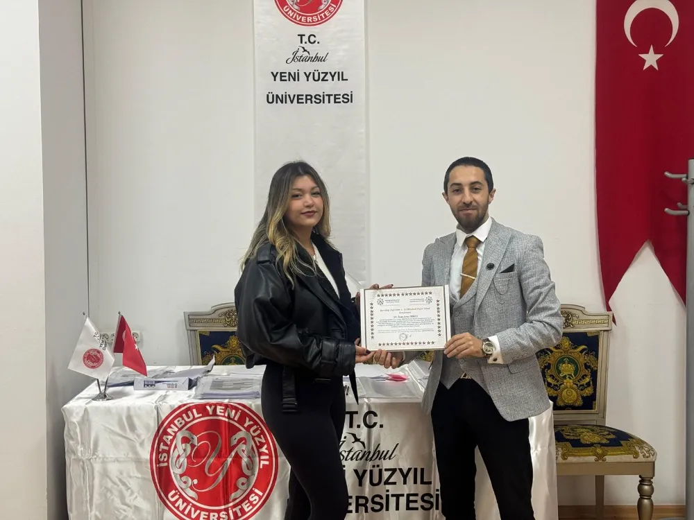 Karabakh is Azerbaijan Milli Platformu T.C Genel Koordinatörlüğü tarafından 10.11.2024 tarihinde düzenlenen “Karabağ Zaferinin 4. Yıl dönümü” konferansında desteklerinden dolayı, T.C Yeni Yüzyıl Üniversitesi Heyetini temsilen Sn Gülçin METE hanıma ve değerli genç üniversiteli öğrencilere kurumumuz adından “Teşekkür “ sertifikası taktim edilmiştir.