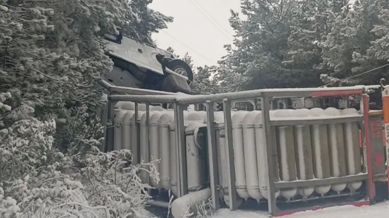 Kastamonu’nun Bozkurt ilçesinde boş doğal gaz tüplerinin bulunduğu bir tır, kontrolden çıkarak şarampole devrildi. Kaza, Bozkurt-Abana kara yolunun Darsu köyü mevkisinde meydana geldi.