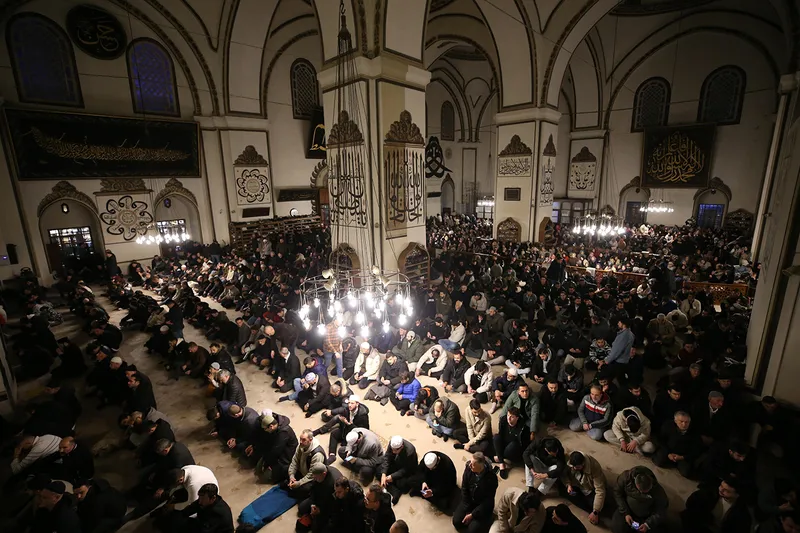 Başta tarihi Ulu Cami, Emir Sultan Cami ve Yeşil Cami olmak üzere kent genelindeki birçok camide kandil programları düzenlendi.