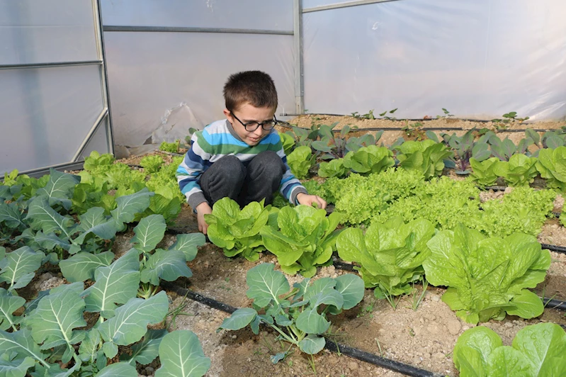 Bahçesine 40 sert çekirdekli meyve fidanı dikilen okuldaki öğrenciler, aynı zamanda 60 metrekare alanda kurulan seraya, öğretmenlerinin gözetiminde marul, brokoli, çilek, kabak, biber ve salatalık fidesi dikti.