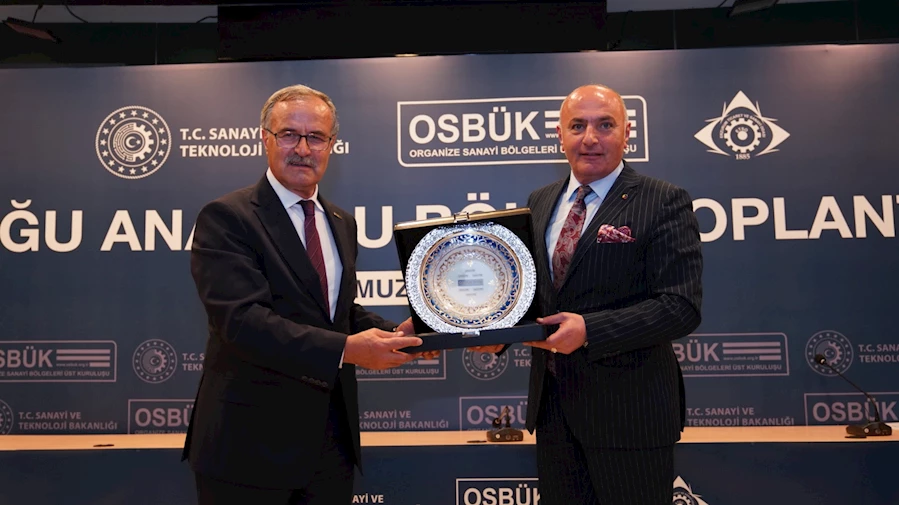 Toplantı sonunda ise Başkan Özakalın, Bakan Yardımcısı ve OSBÜK Başkanına İşlemeli Semaver ve karşılıklı olarak plaket takdim ettiler.