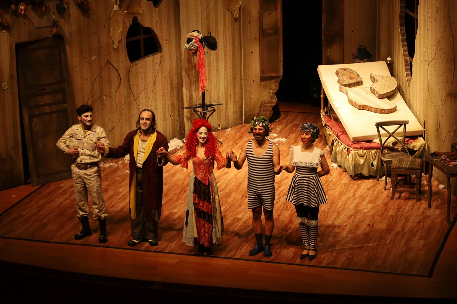 Deneyimli oyuncu kadrosunun performansı ve etkileyici sahne tasarımı, oyunun atmosferini daha da güçlendirirken izleyiciler ayakta alkışladı. Oyunda savaşın barışa yeğlendiği bir dünyada insanlık durumu mizahi ve trajik bakışla ortaya koydu.