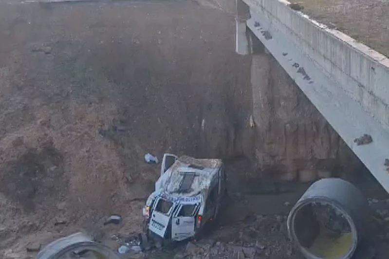 Aydınlı Mahallesi Şekerpınar Çöp Yolu Mevkiinde, özel bir şirkete ait olan personel servisi, yaklaşık 20 metre yükseklikten şarampole devrildi.