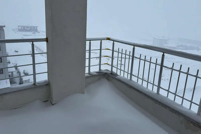Kar yağışıyla birlikte cadde ve sokakların yanı sıra binaların balkonları da tamamen karla kaplandı.