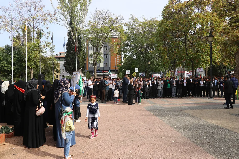 Katil ve işgalci siyonist rejiminin Gazze'ye yönelik insanlık dışı saldırılarına tepki amacıyla halkın yoğun katılımıyla düzenlenen basın açıklamasında, İslam ümmetine "Mescid-i Aksa'ya sahip çıkın" çağrısının yanı sıra tüm İslam ülkelerine işgalcilerle her türlü ilişkilerin kesilmesi çağrısı da yapıldı.