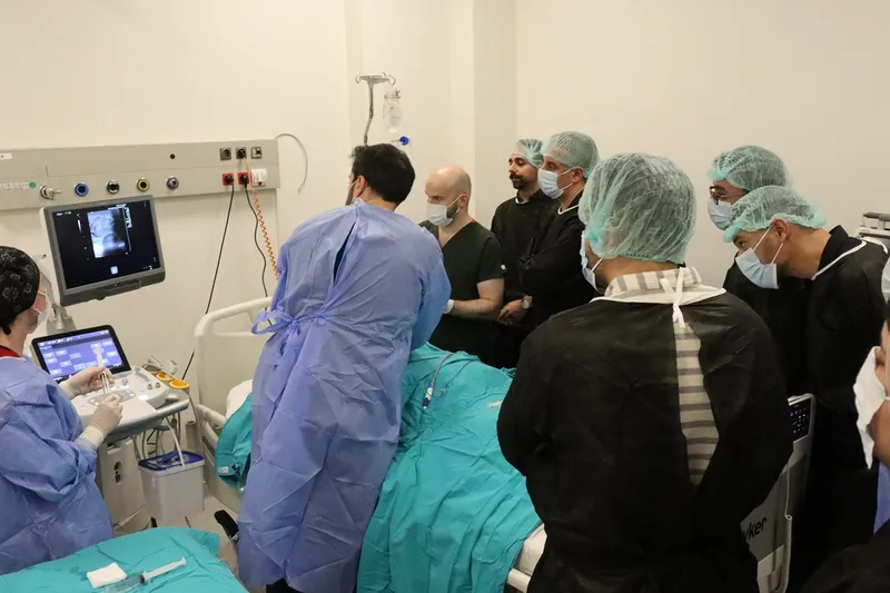 Bursa Şehir Hastanesi’nde görevli girişimsel radyoloji uzmanları Doç. Dr. Furkan Ertürk Urfalı ve Uzm. Dr. Fatih Hakan Tufanoğlu tarafından verilen eğitime Cezayir’den 15 hekim katıldı. Tiroid ve paratiroid hastalıklarında Mikrodalga Ablasyon (MWA) tedavileri ele alındığı eğitimde güncel literatür bilgileri canlı vaka uygulamalarıyla desteklenerek, katılımcılara aktarıldı.