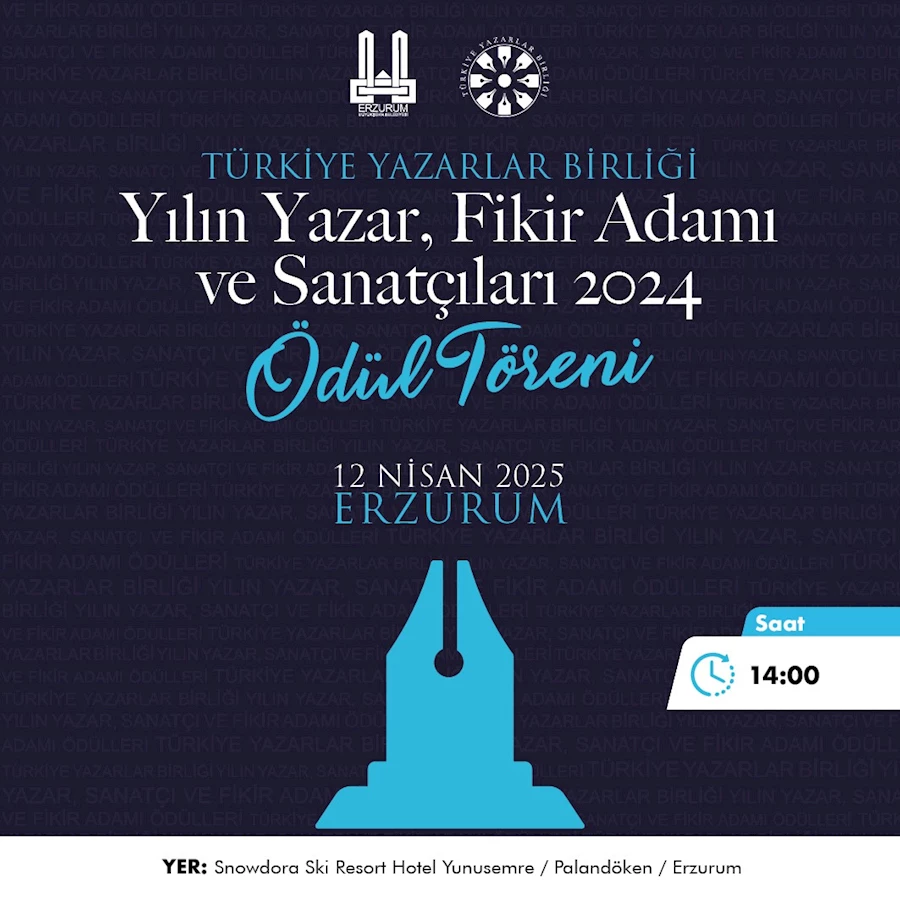 Türkiye Yazarlar Birliği Büyük Ödül Töreni Erzurum da yapılacak...