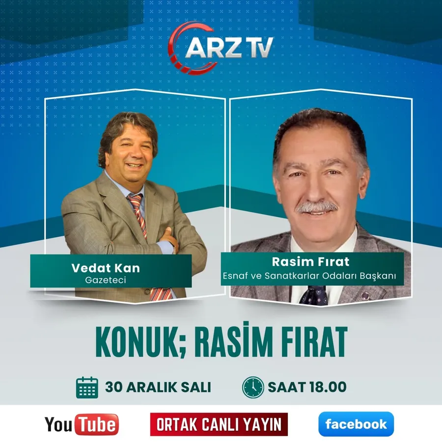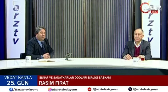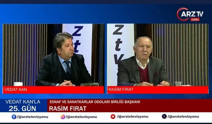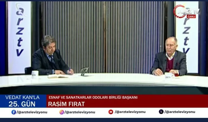 Birikim Medya A.Ş. bünyesinde bulunan Arz Tv Erzurum Stüdyolarında; Tüm1haber.com ve Globalbakis.com Medya Genel Yayın Yönetmeni Vedat Kan tarafından hazırlanıp sunulan, “25. Gün” Programında bu hafta Erzurum’un Esnaf ve Sanatkârları Odaları Birliği vardı. Birlik Başkanı Rasim Fırat'ın sunumunda Erzurum Esnaf ve Sanatkârının durumu, ekonomi çerçevesindeki gelinen noktası, 2026 yılı itibarıyla başlanılacak olan 586. Nolu VUK Genel tebliği uygulamaları, Ahilik kavramı, şehrimizde bazı iş insanları ve firmaların konkordato ilanları ve bu ilanların Erzurum Esnaf ve Sanatkarına etkileri yanı sıra, 2026 yılı Ocak – Mart ayları arasında yapılması planlanmış birliğe bağlı oda teşekküllerinde yapılacak olan seçimli genel kurullar ele alındı.