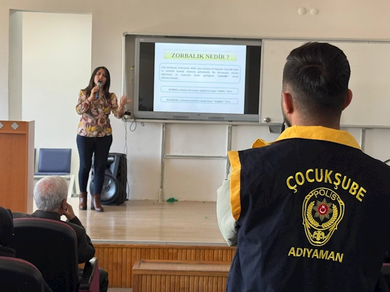 ADIYAMAN (PHA) - Mustafa TEKİN - Adıyaman Emniyet Müdürlüğü Çocuk Şube Müdürlüğü, gençlerin güvenli bir eğitim ortamında bulunmalarını sağlamak amacıyla yürüttüğü "Yankı Projesi" kapsamında farkındalık çalışmalarına devam ediyor.
